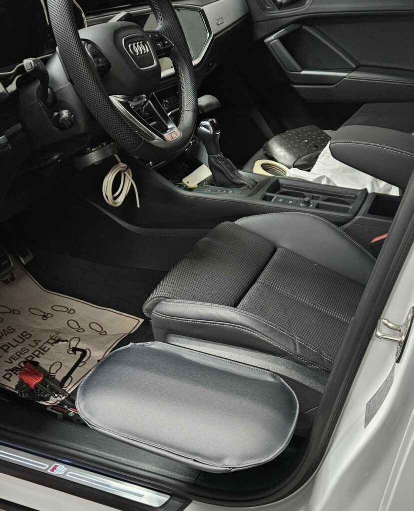 La tablette permet de se transférer du siège conducteur ou passager à un fauteuil roulant et vice-versa.
