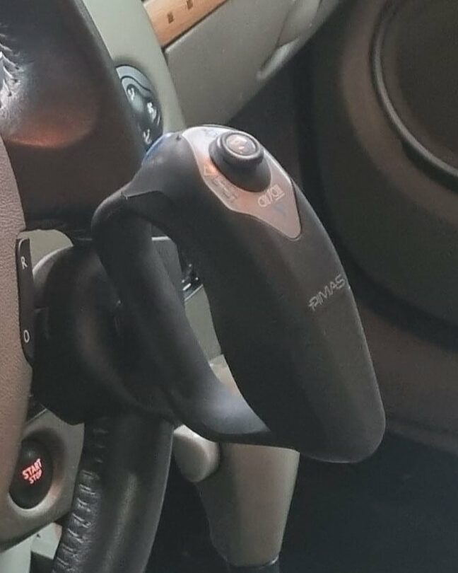 Il permet au conducteur handicapé d’un bras ou d’une main d’utiliser les fonctions des commodos du véhicule, tout en gardant la main valide sur le volant. L’avertisseur sonore, les clignotants, les feux de position, de croisement et de route, les essuie-glaces, le lave-glace sont commandés de façon simple et intuitive avec le pouce.